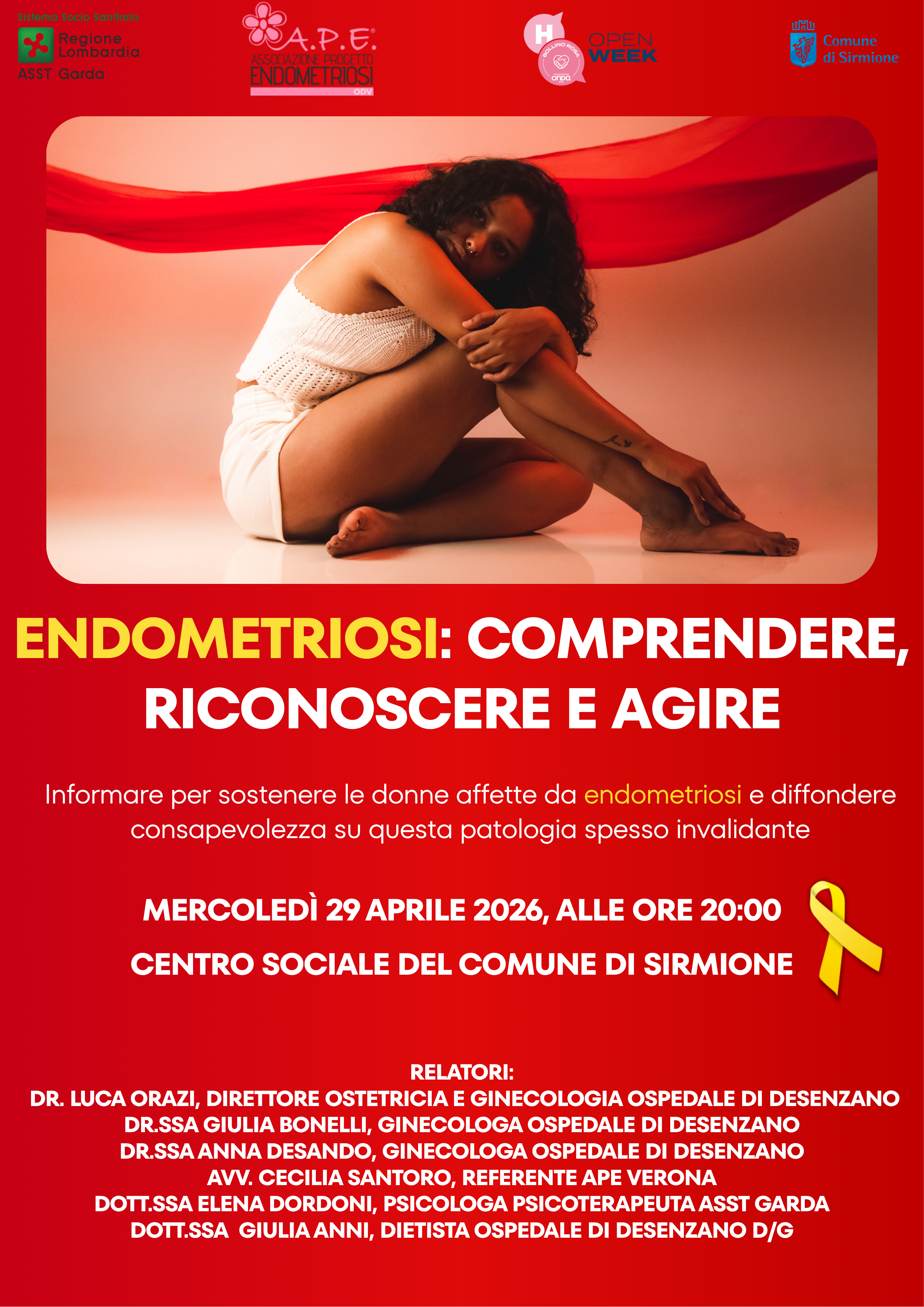 L’incontro è realizzato in collaborazione con il Sistema Socio-Sanitario Regione Lombardia – ASST Garda, A.P.E. Associazione Progetti Endometriosi e nell’ambito dell’iniziativa (H) Open Week sulla Salute della Donna, con il supporto dell’Associazione Commercianti Sirmione.